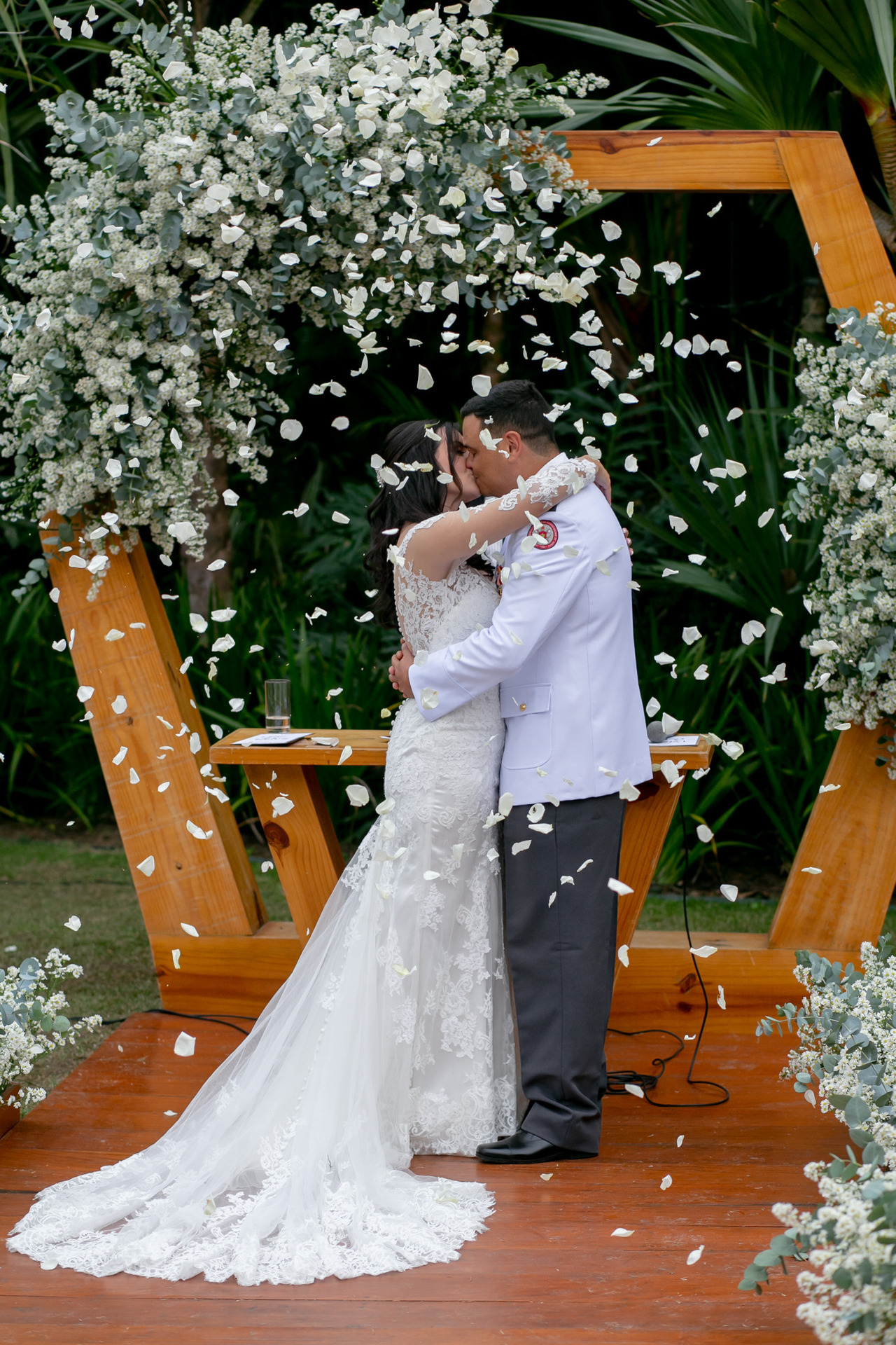 Por exemplo: na hora do beijo, você pode optar em pegar somente o casal - com 50mm- ou o casal e os padrinhos assistindo - com 24mm.